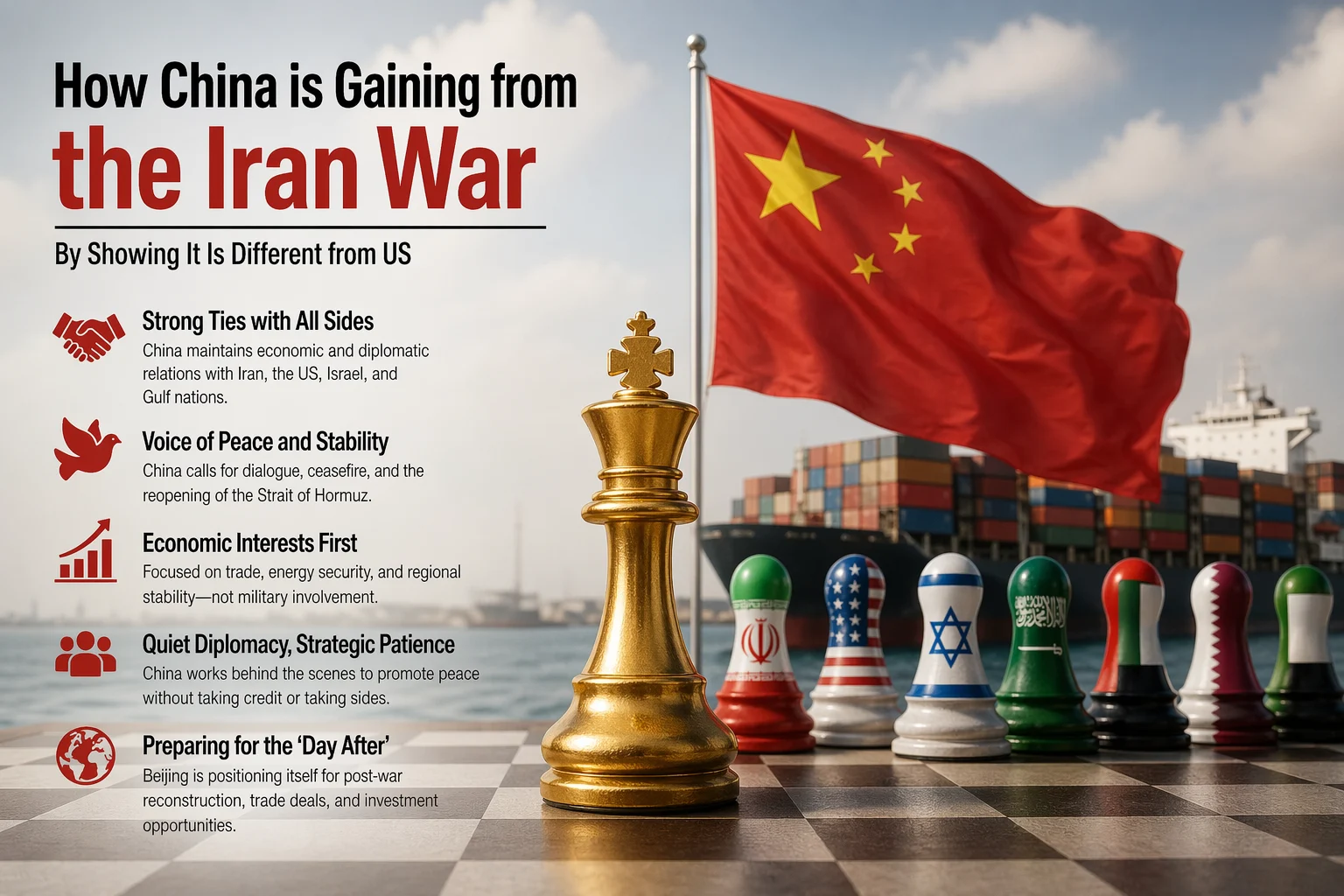 By staying neutral and maintaining relationships on all sides, China is positioning itself to benefit economically once the conflict ends.